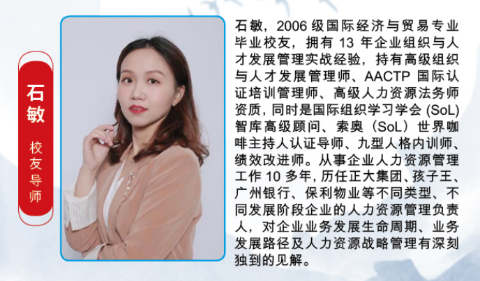 1.优秀校友导师:具备丰富行业从业经验,熟悉职场发展规律,可从行业视角为毕业生提供实用求职建议。